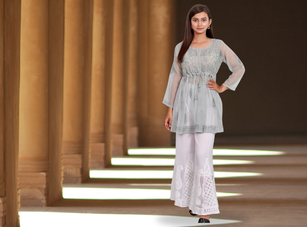 Plus Size Chikan Embroidery Aari Work Kurti for Women